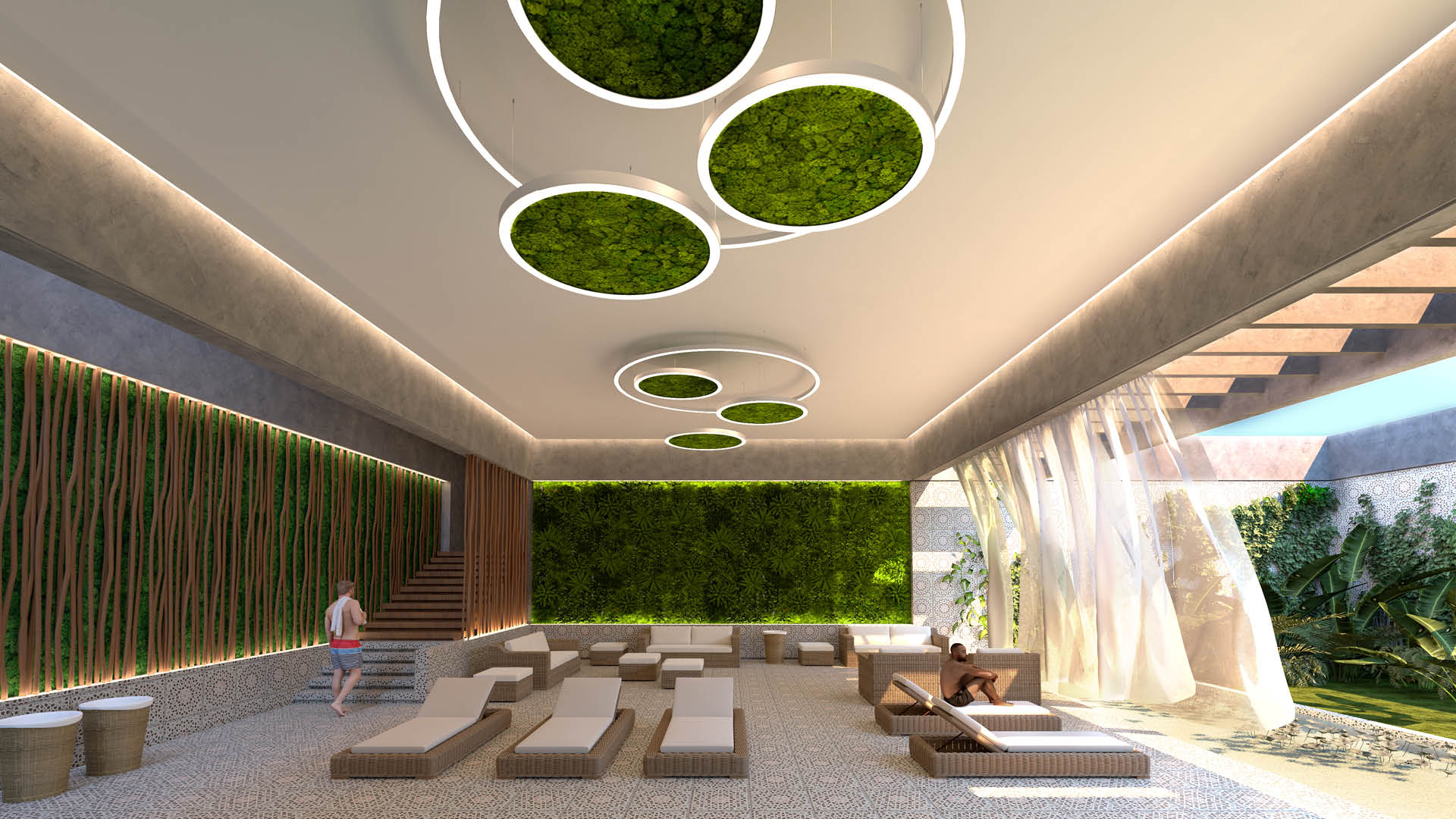 La integración de acabados vegetales en perfecta sintonía con el entorno natural se materializa sin requerir un mantenimiento específico, gracias al uso de productos preservados que no demandan ni riego ni luz solar. Este enfoque no se limita a una simple estética visual, sino que promueve de manera efectiva la adopción del concepto biofílico en los espacios interiores. Así, logramos transmitir los beneficios estéticos y emocionales que la naturaleza ofrece, generando un impacto positivo tanto en el ambiente como en quienes lo habitan.