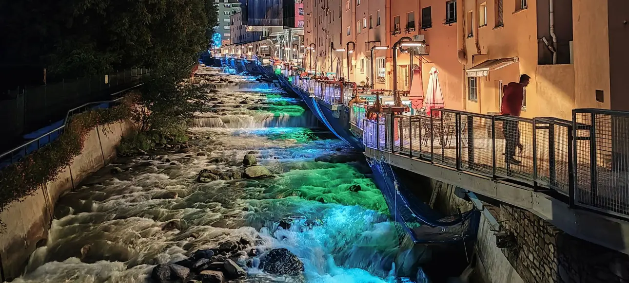 Más allá de todo su conjunto, es la iluminación lo que convierte esta obra en una experiencia realmente envolvente. Gracias a la tecnología LED de Luxes, el agua se transforma en un lienzo en constante evolución, creando una coreografía de color que interactúa con la ciudad y sus visitantes.